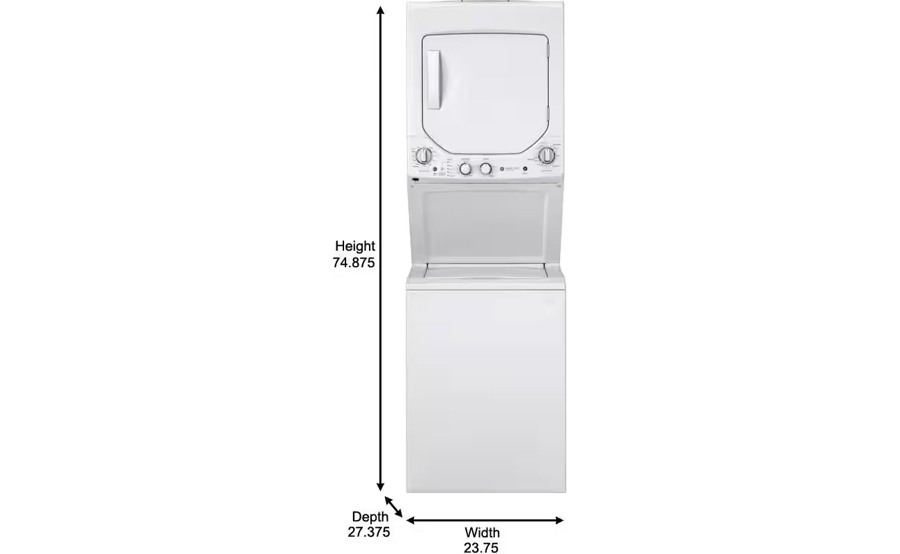 Tap and Hold to Zoom 2.3 cu. ft. Washer 4.4 cu. ft. Electric Dryer Combo in White by GE