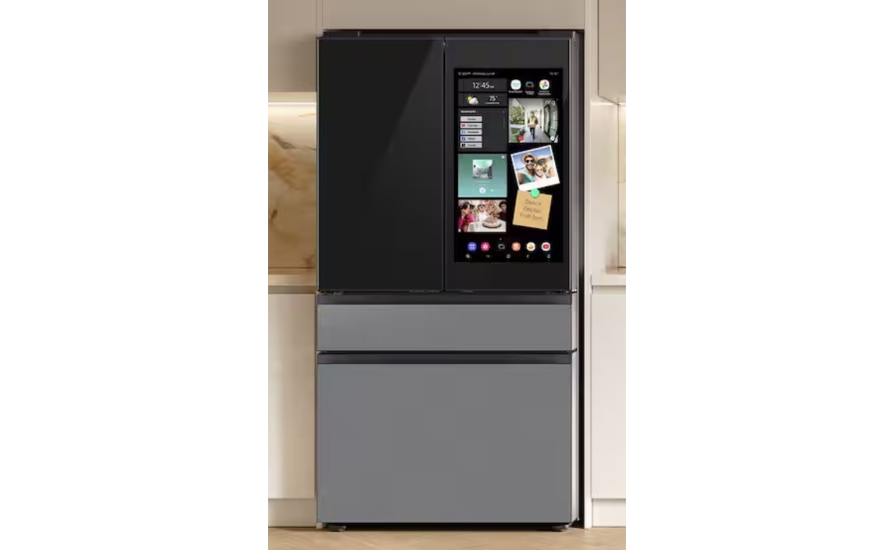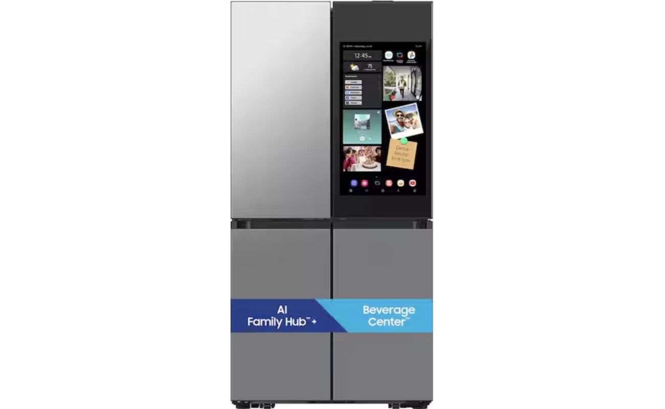 Bespoke 29 cu. ft. Standard Depth 4-Door Flex French Door Refrigerator in Stainless Steel with Charcoal Family Hub+