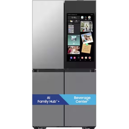 Bespoke 29 cu. ft. Standard Depth 4-Door Flex French Door Refrigerator in Stainless Steel with Charcoal Family Hub+